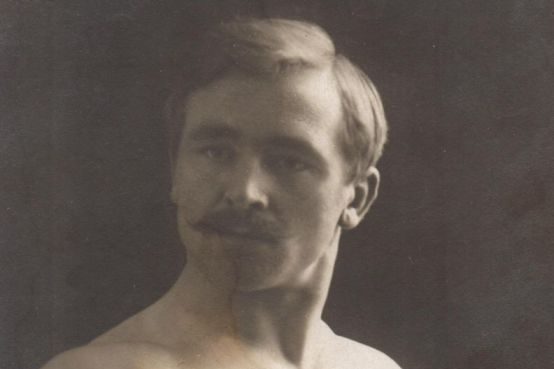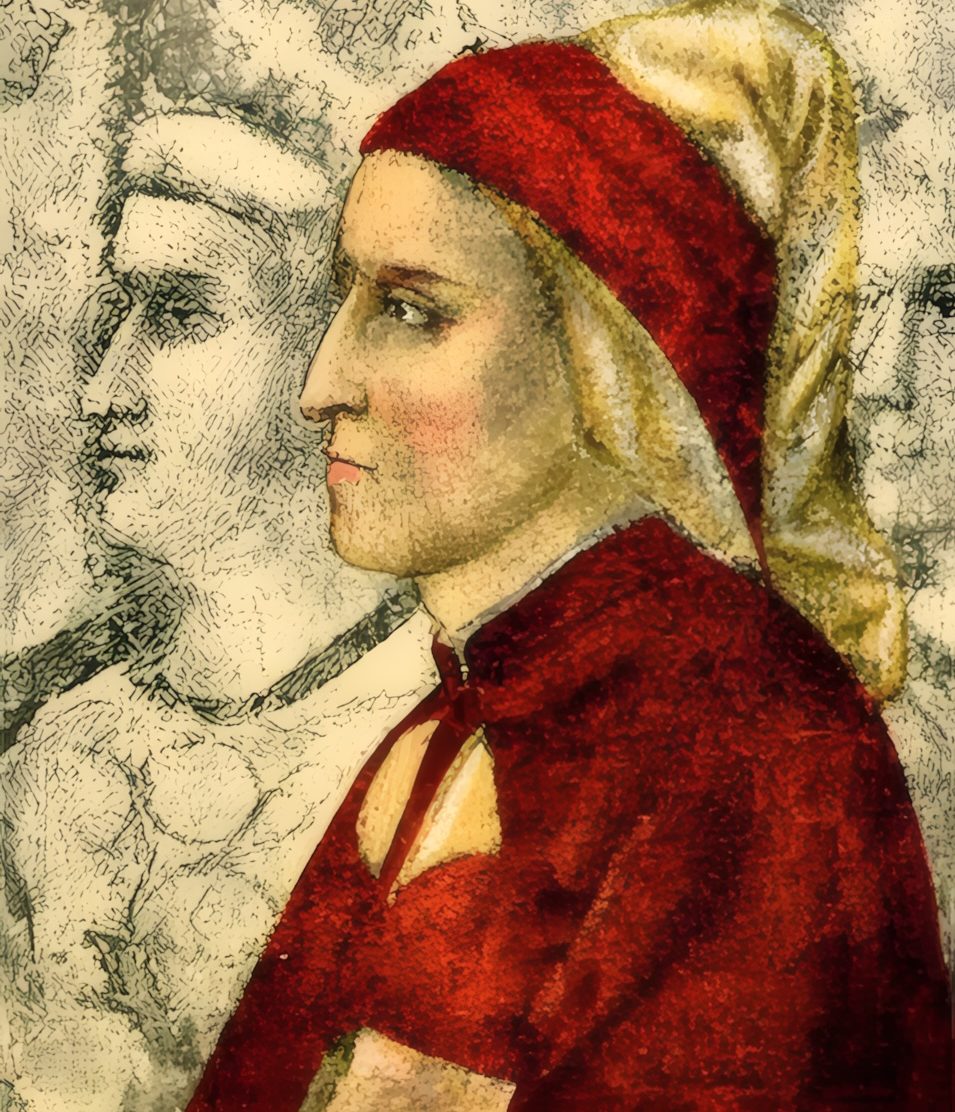 Modell für diese Plastik stand der muskulöse französische Preisboxer und Ringer Jean Baud (sw-Foto, Schnäuzer), der meist im Rotlichtmilieu auftrat. Die Plastik soll Dante Alighieri (oben, Bild) darstellen, den genialen Schöpfer der Göttlichen Komödie.