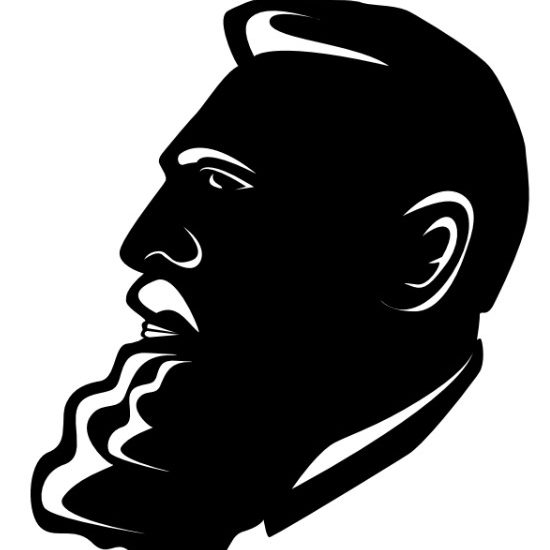 Die Plastik  Der Denker( französisch Le Penseur ) zählt zu den Hauptwerken des Bildhauers  Auguste Rodin (sw-Schattenriss, Vollbart)und entstand zwischen 1880 und 1882.